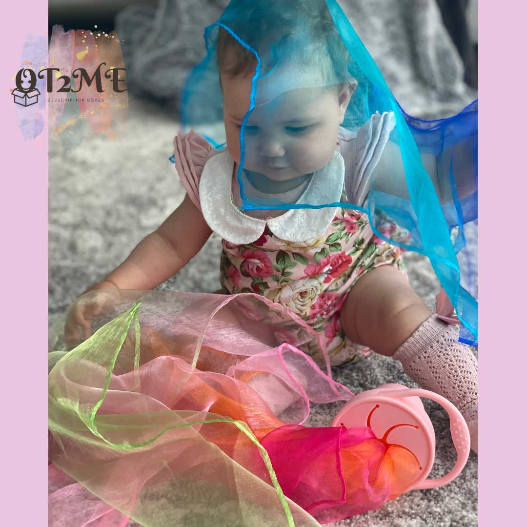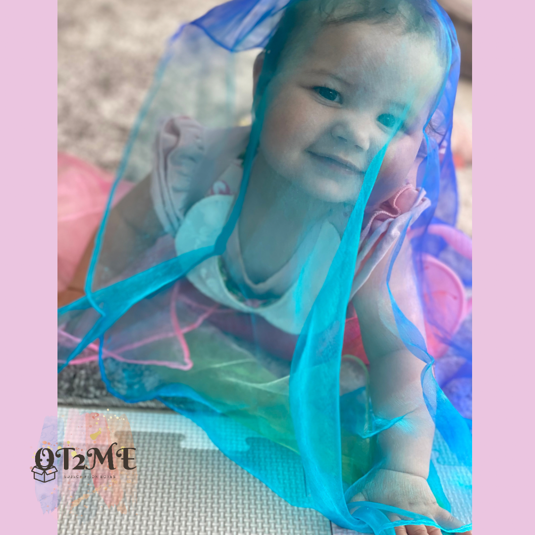 Our baby scarf pull is such a fun activity for your baby. It encourages the development of fine motor strength and coordination, bilateral coordination, cause and effect, object permanence and much much more!